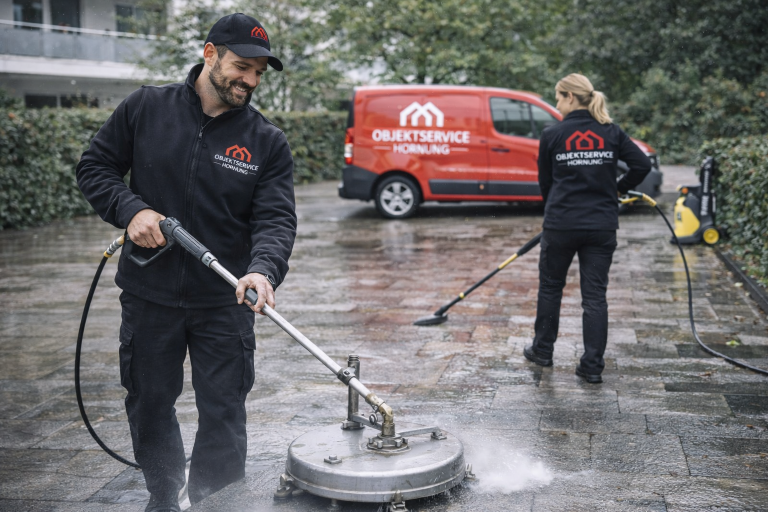 Reinigung von Höfen, Einfahrten, Gehwegen und Terrassenflächen.