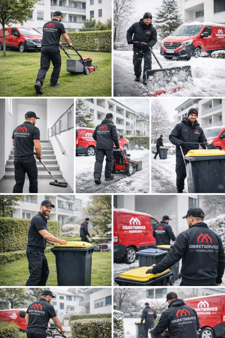 Objektservice Hornung bietet professionelle Objektbetreuung und Hausmeisterservice im Rhein-Main-Gebiet. Dazu gehören unter anderem regelmäßige Objektkontrollen, Hausmeisterservice, Treppenhausreinigung, Mülltonnenservice, Grünpflege, Winterdienst, Kleinreparaturen, Koordination externer Handwerker, Entrümpelung und Haushaltsauflösungen, Photovoltaik-Reinigung sowie Senioren- und Einkaufsservice.